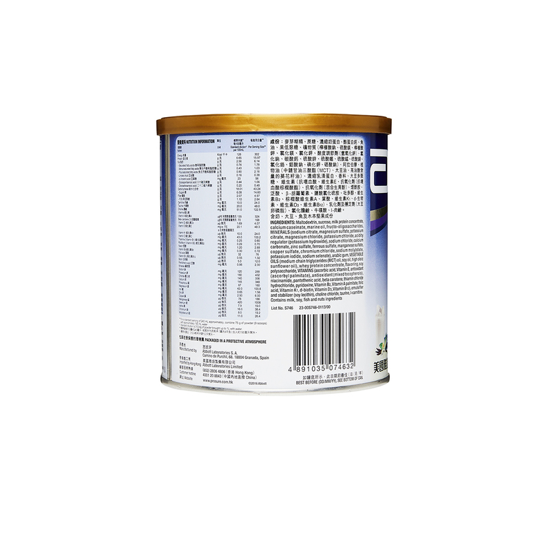 含鱼油EPA – 有助于维持体重及减轻炎症反应浓缩热量– 少量进食,可调高热量摄取丰富蛋白质– 帮助重建和维持肌肉量,促进体重增长适量脂肪– 减少饱滞感含膳食纤维FOS – 有助肠道健康