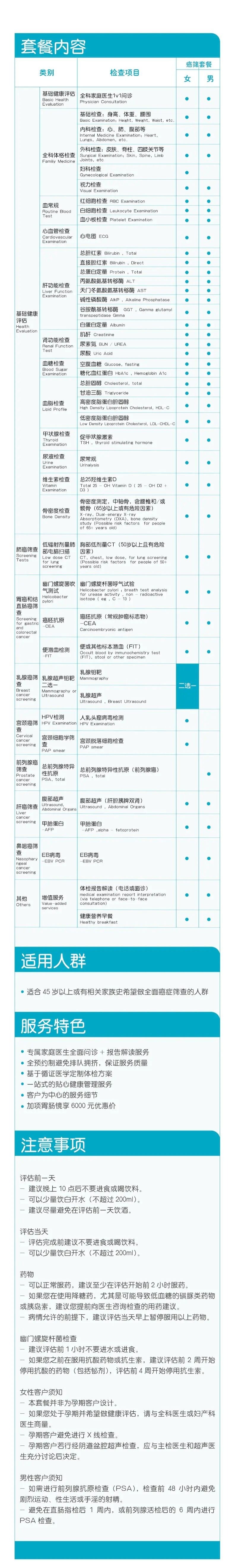 健康體檢套餐 癌篩版(深圳和睦家醫院)